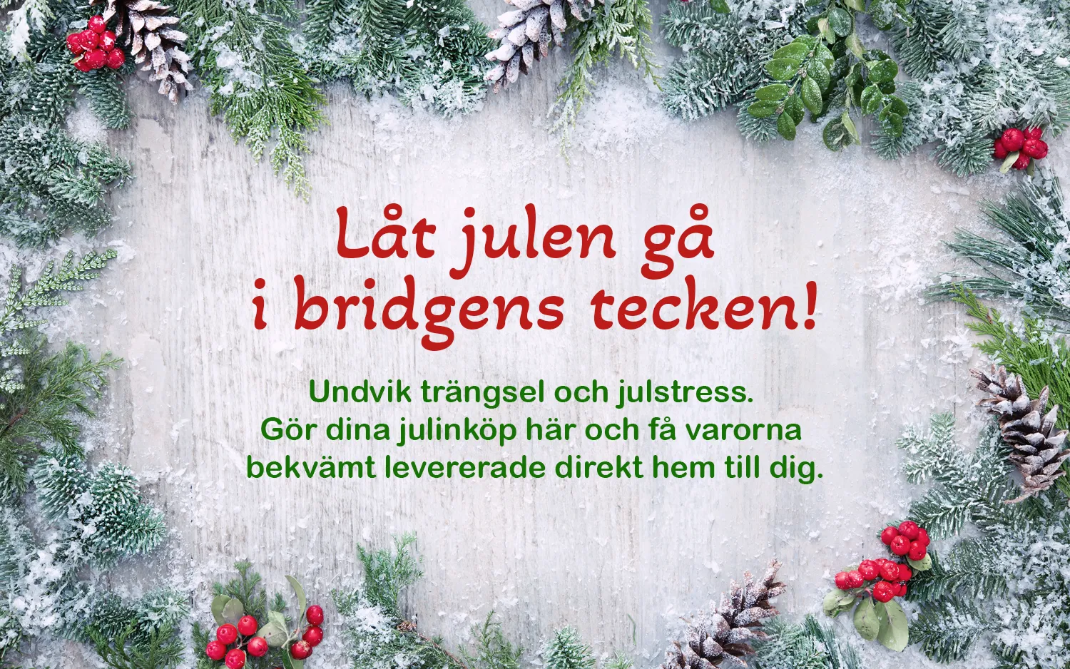 Här hittar du ALLT I BRIDGE! Välj kategori och placera sedan dina artiklar i varukorgen.