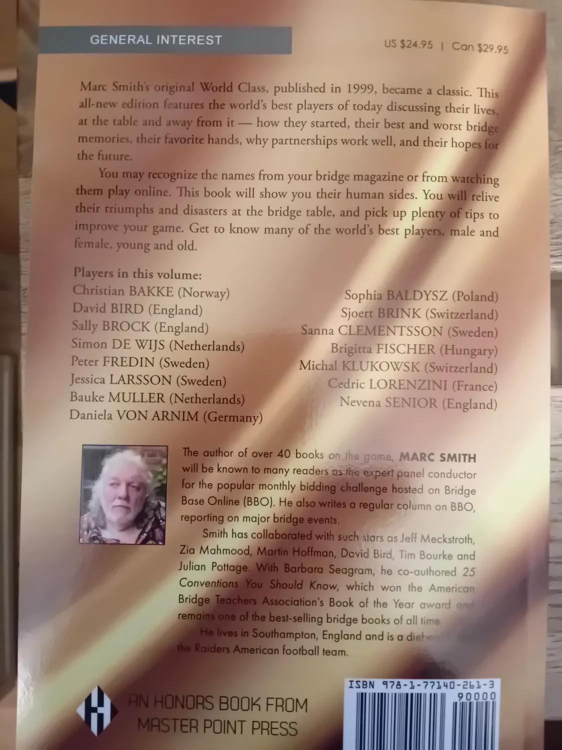 Marc Smiths original World Class, publicerad 1999, blev en klassiker. Denna helt nya utgåva innehåller världens bästa spelare av idag som diskuterar sina liv, vid bordet och vid sidan om det – hur de började spela bridge, deras bästa och sämsta bridgeminnen, deras favoritgivar, varför partnerskap fungerar bra och deras förhoppningar för framtiden.