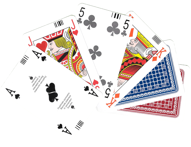 Klöver är grå, ruter är orange, hjärter är röd och spader är svart.